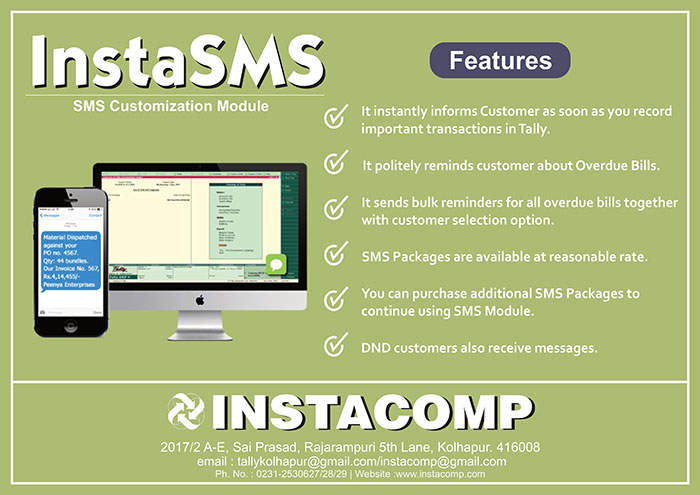 - It instantly informs Customer as soon as you record important transactions in Tally.
